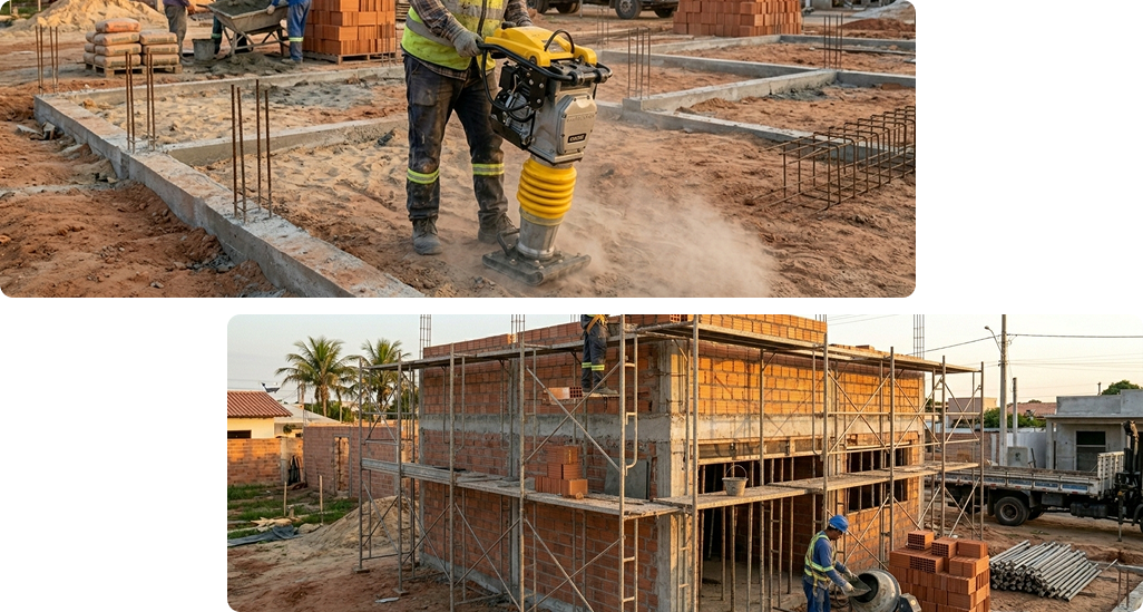 Martellete • Betoneira • Andaime • Serra Mármore • Compactador de Solo • Rompedor • Furadeira • Parafusadeira • Esmerilhadeira • Cortadora de Piso • Placa Vibratória • Nível a Laser • Lixadeira • Gerador de Energia • Vibrador de Concreto • Escora Metálica